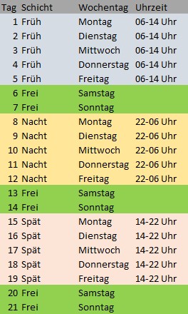 Arbeitszeiten im 3-Schicht-Betrieb: